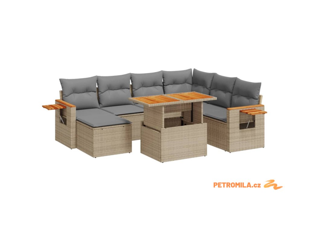 Sada zahradních pohovek s polštářem 8 pcs Béžová Poly ratan