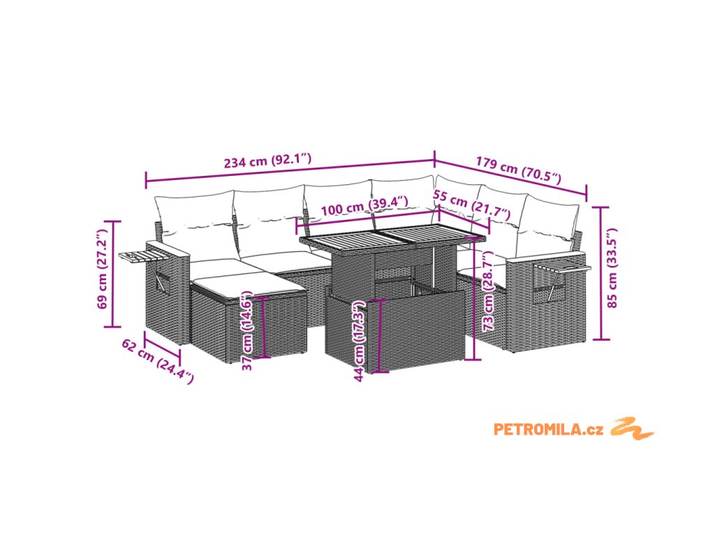 Tato zahradní sedací souprava je dokonalým doplňkem vaší zahrady, terasy nebo dvorku a poskytne vám pohodlné a příjemné místo, kde si můžete povídat s rodinou a přáteli nebo jen tak odpočívat a užívat si pobyt venku.