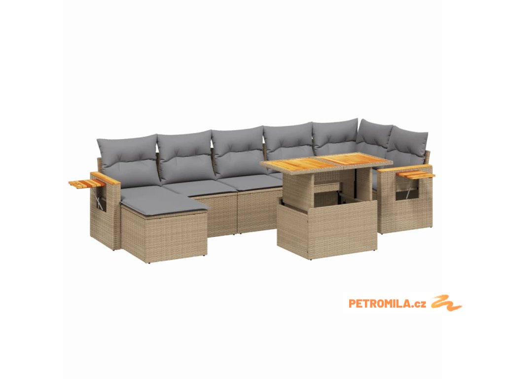 Sada zahradních pohovek s polštářem 8 pcs Béžová Poly ratan