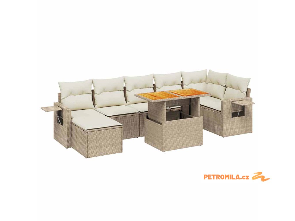 Sada zahradních pohovek s polštářem 7 pcs Béžová Poly ratan