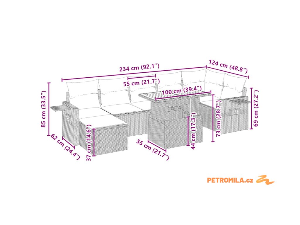Tato zahradní sedací souprava je dokonalým doplňkem vaší zahrady, terasy nebo dvorku a poskytne vám pohodlné a příjemné místo, kde si můžete povídat s rodinou a přáteli nebo jen tak odpočívat a užívat si pobyt venku.