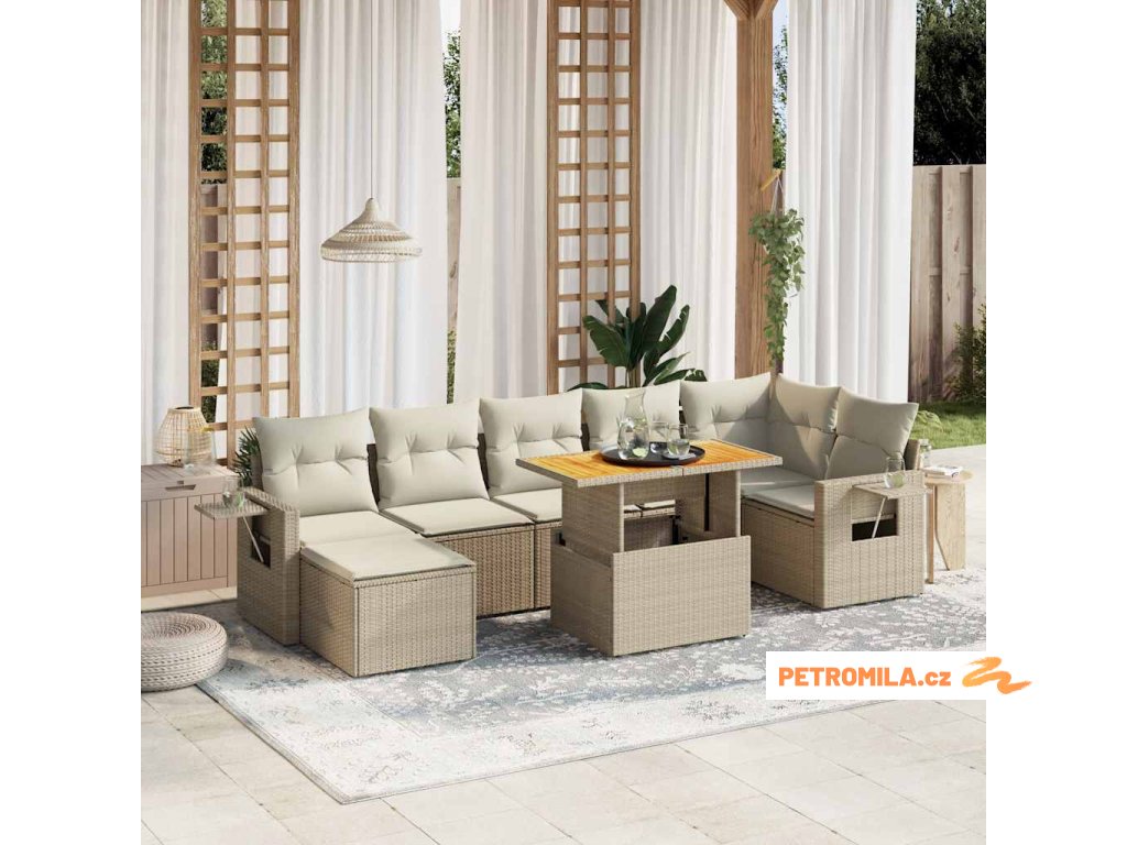 8dílná zahradní sedací souprava s poduškami béžová polyratan