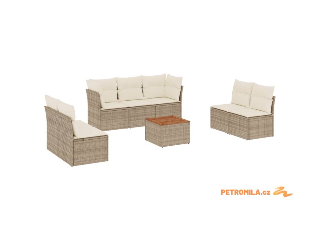 Sada zahradních pohovek s polštářem 8 pcs Béžová Poly ratan