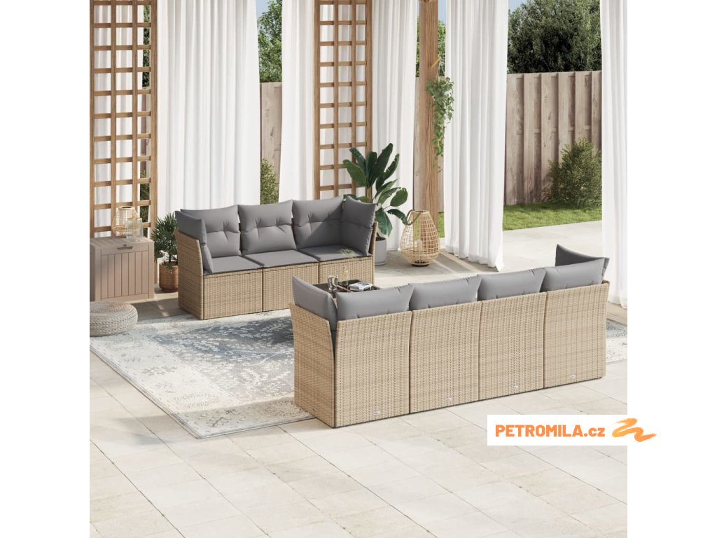 Sada zahradních pohovek s polštářem 9 pcs Béžová Poly ratan