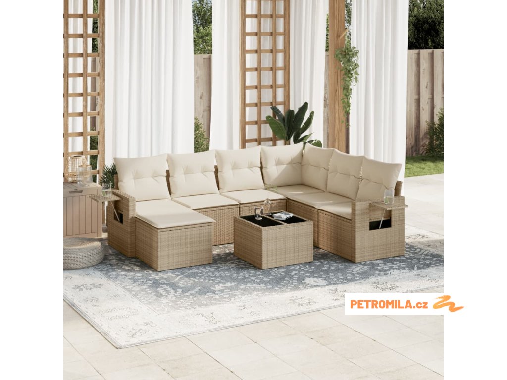 Sada zahradních pohovek s polštářem 8 pcs Béžová Poly ratan