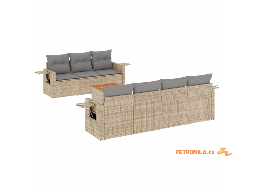 8dílná zahradní sedací souprava s poduškami béžová polyratan