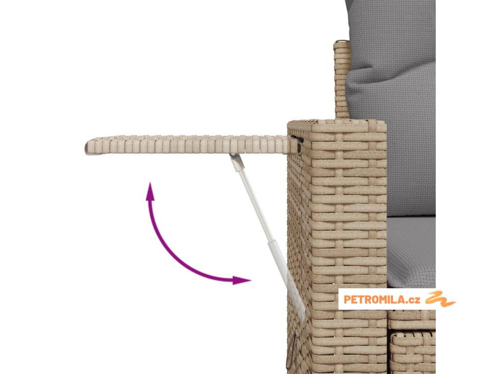 • Pohodlný odkládací stolek: Tento venkovní nábytek má na područkách skládací stolek s plynovou pružinou, jež poskytuje praktické místo pro vaše nezbytnosti, kde je budete mít na dosah ruky.