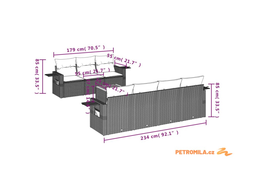 Tato zahradní sedací souprava je dokonalým doplňkem vaší zahrady, terasy nebo dvorku a poskytne vám pohodlné a příjemné místo, kde si můžete povídat s rodinou a přáteli nebo jen tak odpočívat a užívat si pobyt venku.