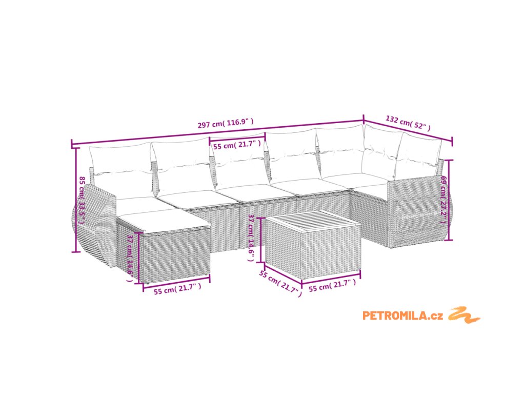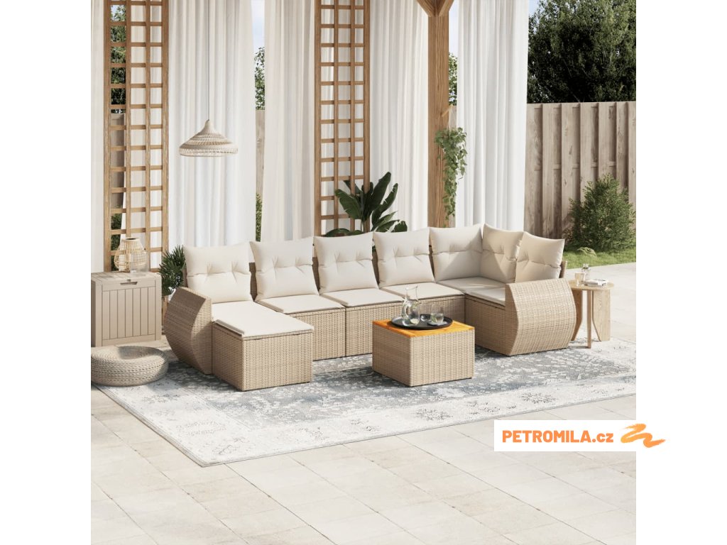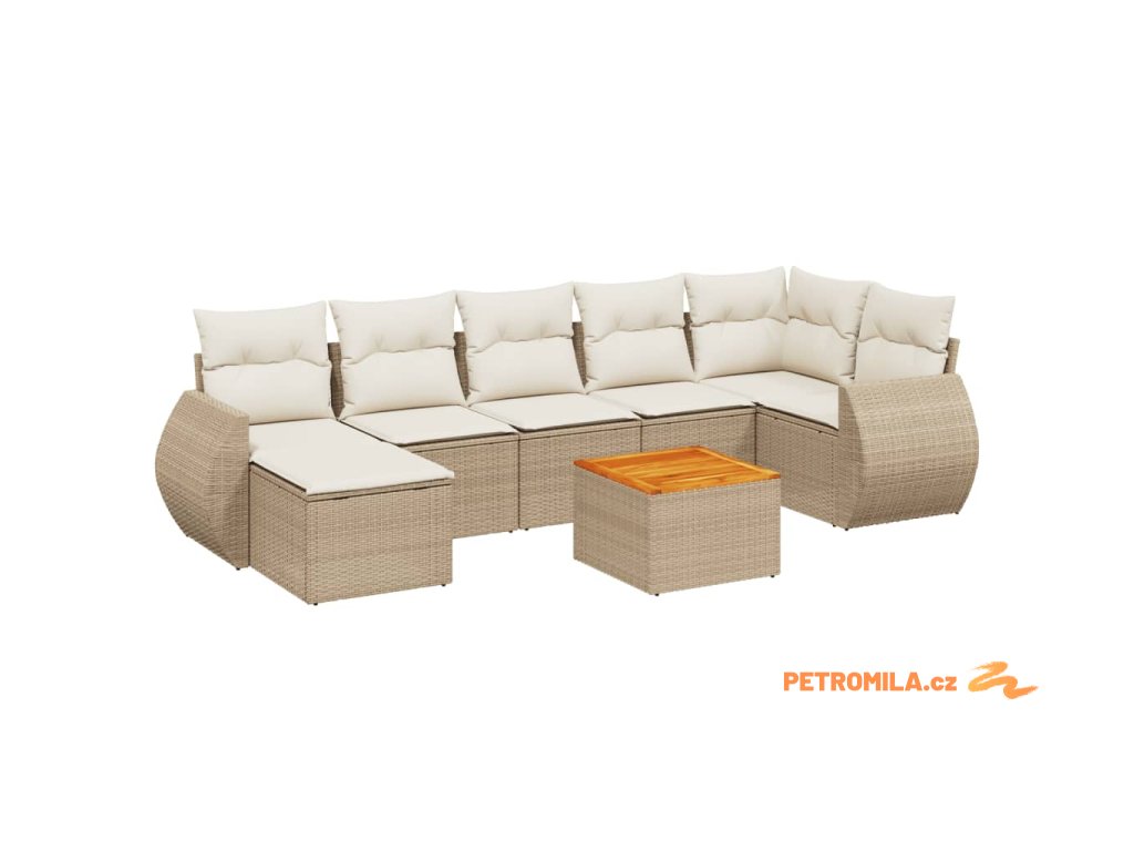 Sada zahradních pohovek s polštářem 8 pcs Béžová Poly ratan