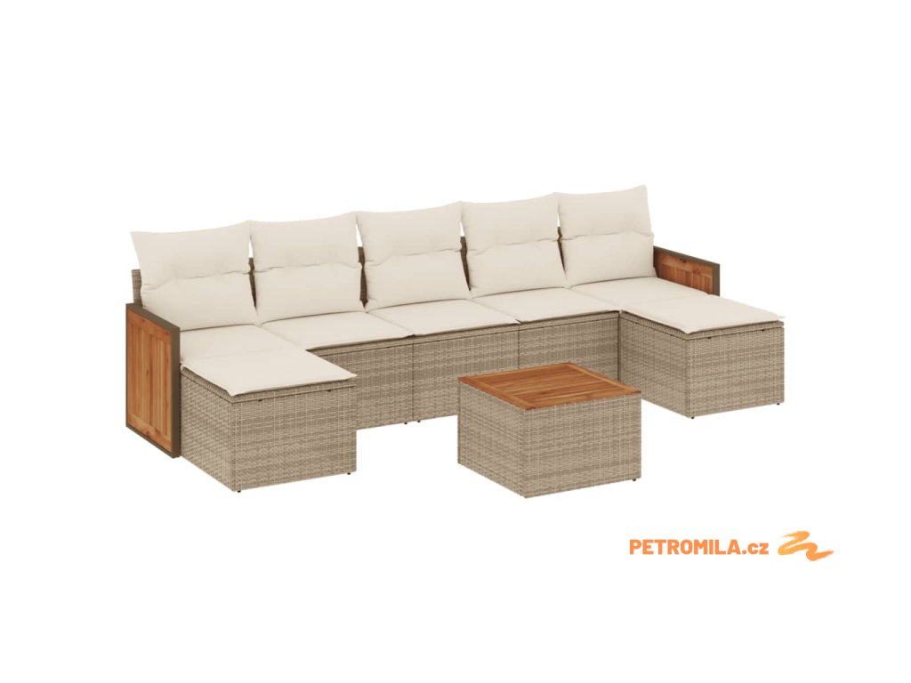 Sada zahradních pohovek s polštářem 8 pcs Béžová Poly ratan