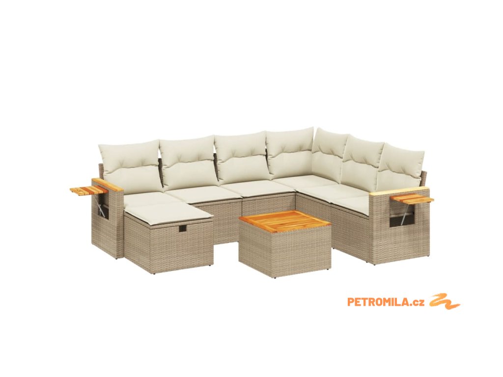 Sada zahradních pohovek s polštářem 8 pcs Béžová Poly ratan