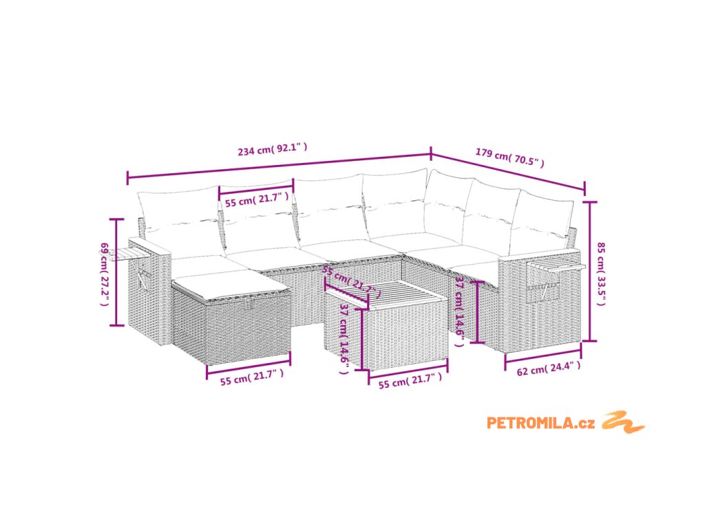 Tato zahradní sedací souprava je dokonalým doplňkem vaší zahrady, terasy nebo dvorku a poskytne vám pohodlné a příjemné místo, kde si můžete povídat s rodinou a přáteli nebo jen tak odpočívat a užívat si pobyt venku.