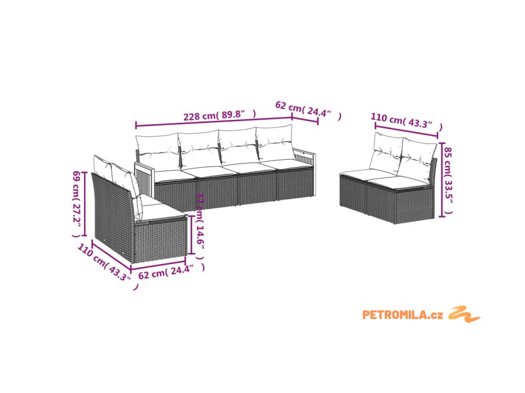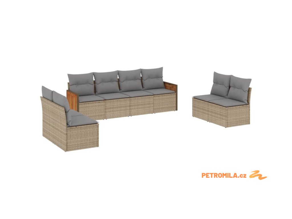 Sada zahradních pohovek s polštářem 8 pcs Béžová Poly ratan