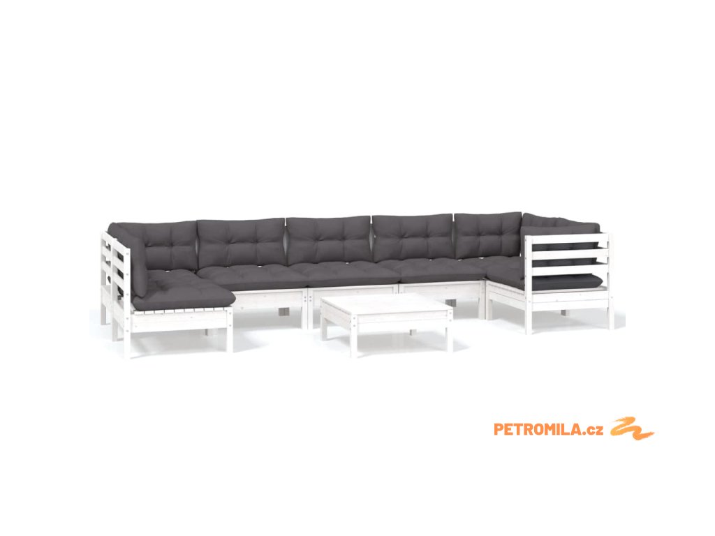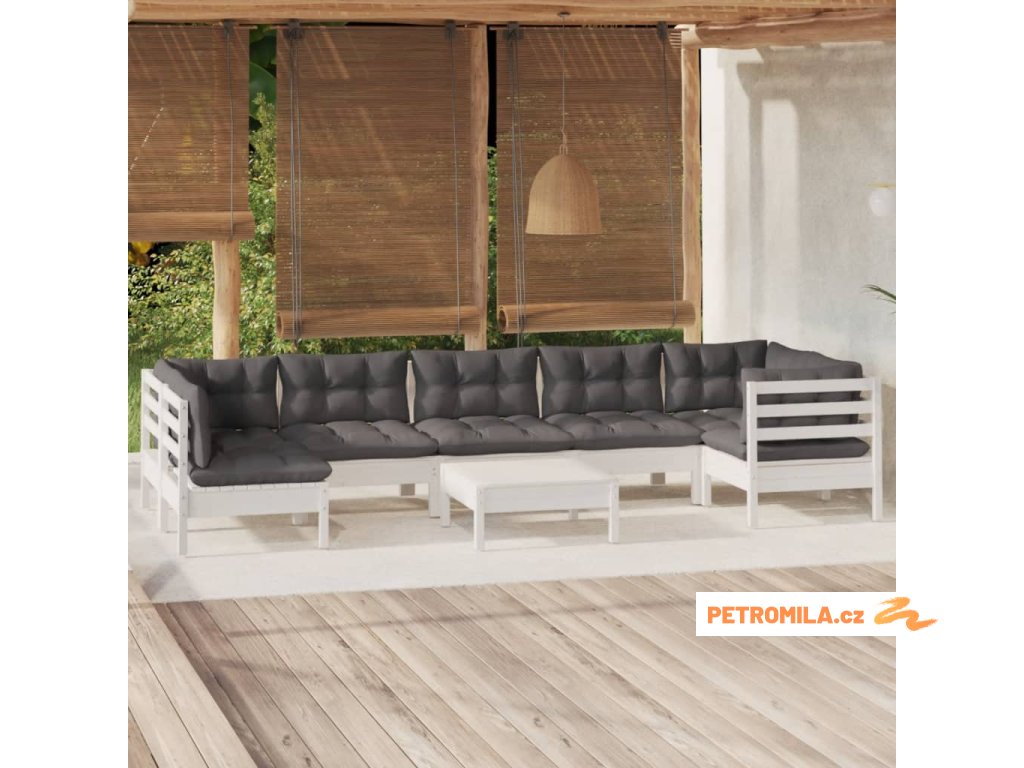 8dílná zahradní sedací souprava s poduškami bílá borovice
