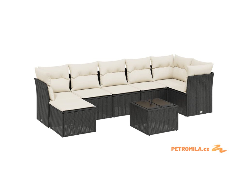 8dílná zahradní sedací souprava s poduškami černá polyratan