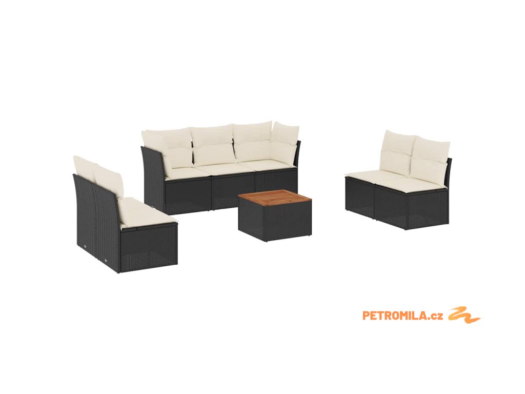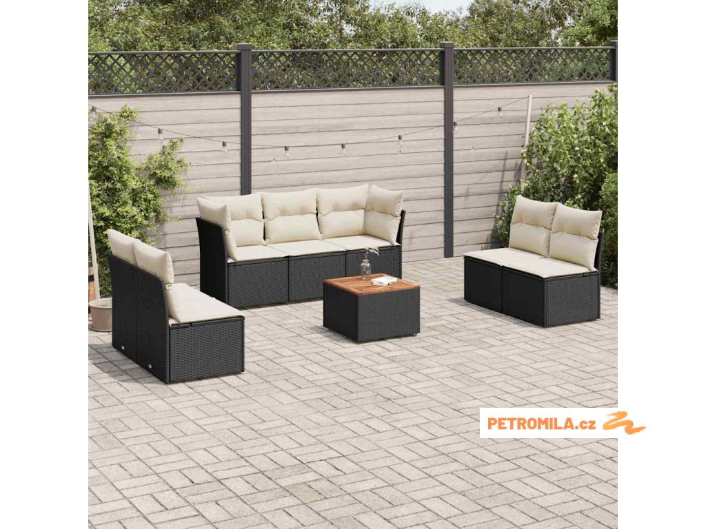 8dílná zahradní sedací souprava s poduškami černá polyratan