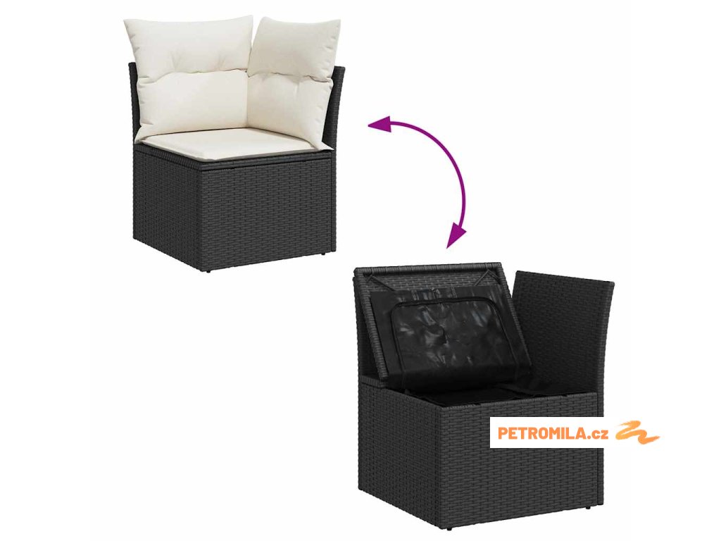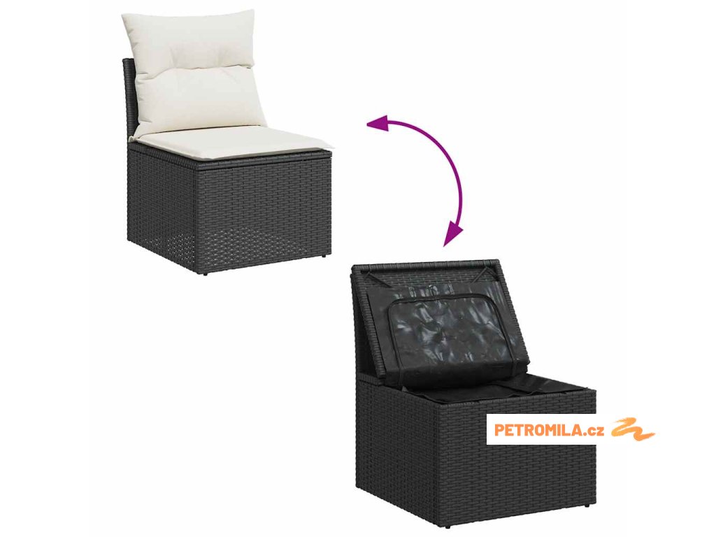 11dílná zahradní sedací souprava s poduškami černá polyratan