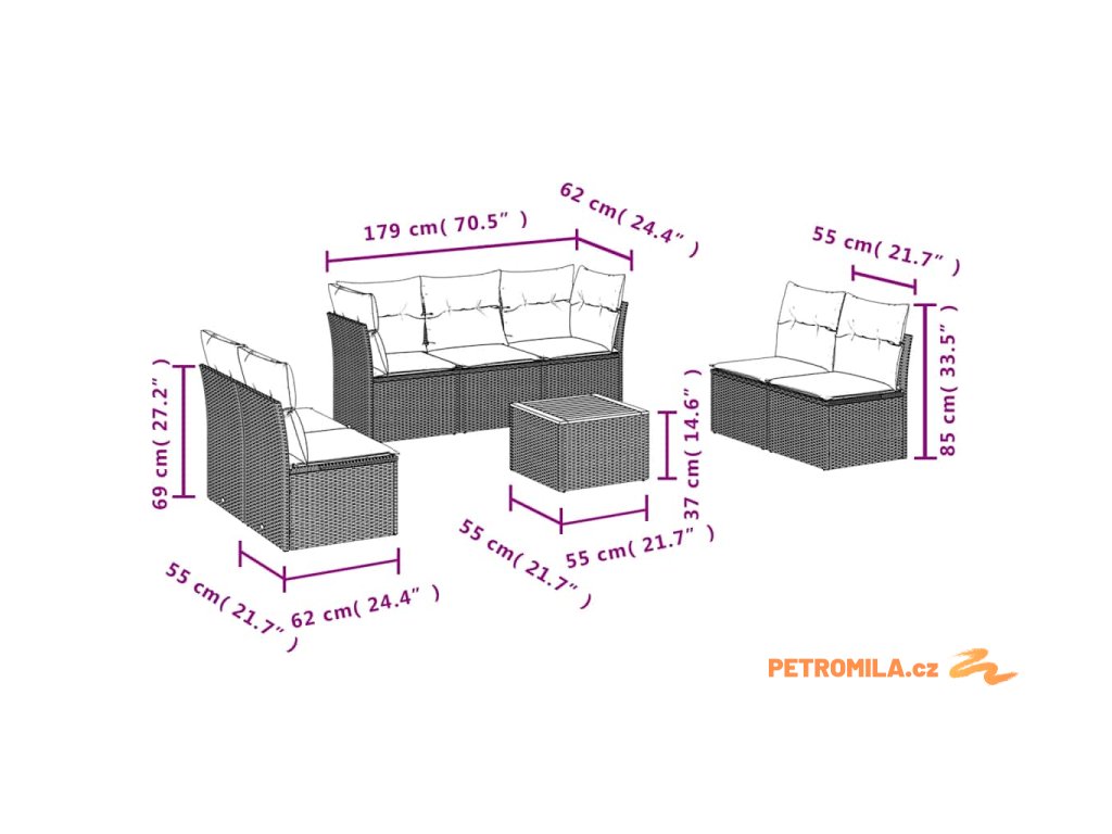 Sada zahradních pohovek s polštářem 8 pcs Béžová Poly ratan
