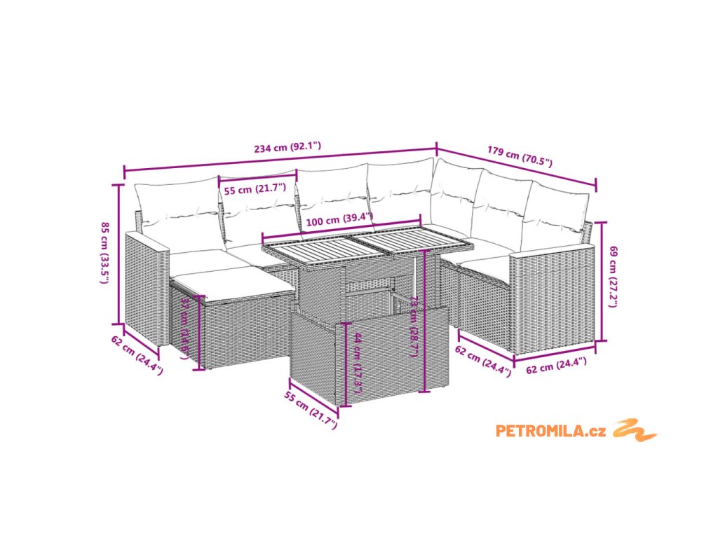 Tato zahradní sedací souprava je dokonalým doplňkem vaší zahrady, terasy nebo dvorku a poskytne vám pohodlné a příjemné místo, kde si můžete povídat s rodinou a přáteli nebo jen tak odpočívat a užívat si pobyt venku.