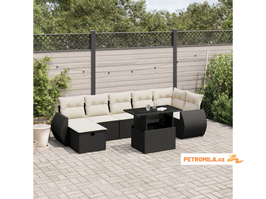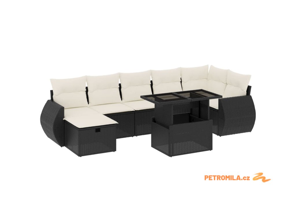 8dílná zahradní sedací souprava s poduškami černá polyratan