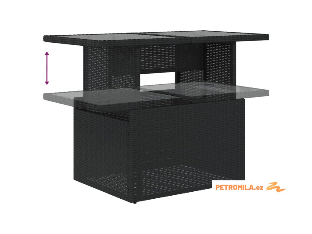 - Materiál: PE ratan, práškově lakovaná ocel, tvrzené sklo