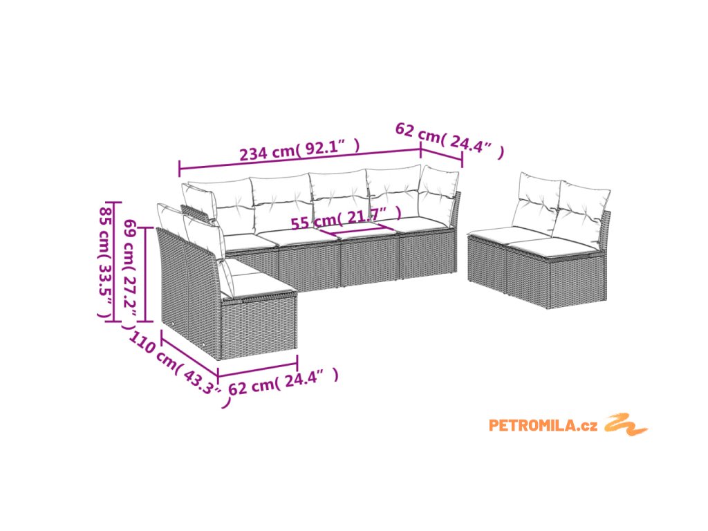 8dílná zahradní sedací souprava s poduškami černá polyratan