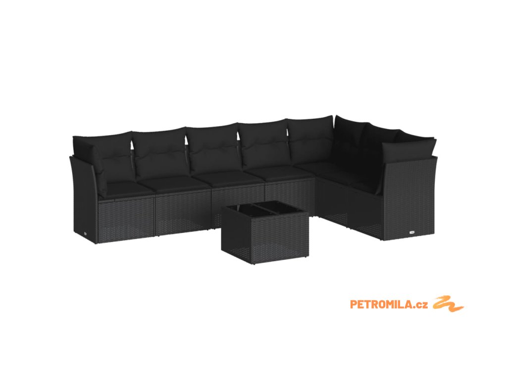8dílná zahradní sedací souprava s poduškami černá polyratan