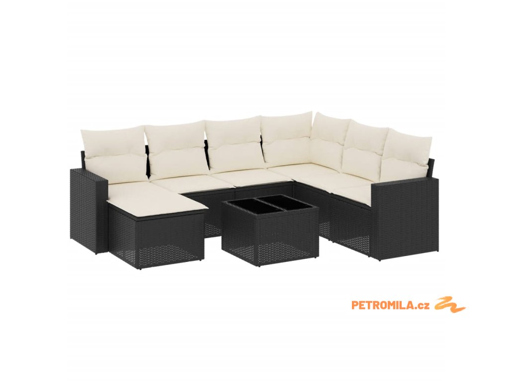 8dílná zahradní sedací souprava s poduškami černá polyratan