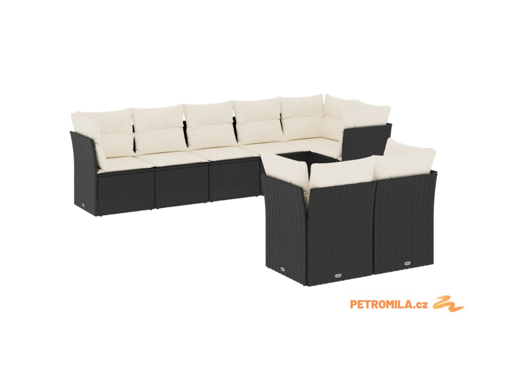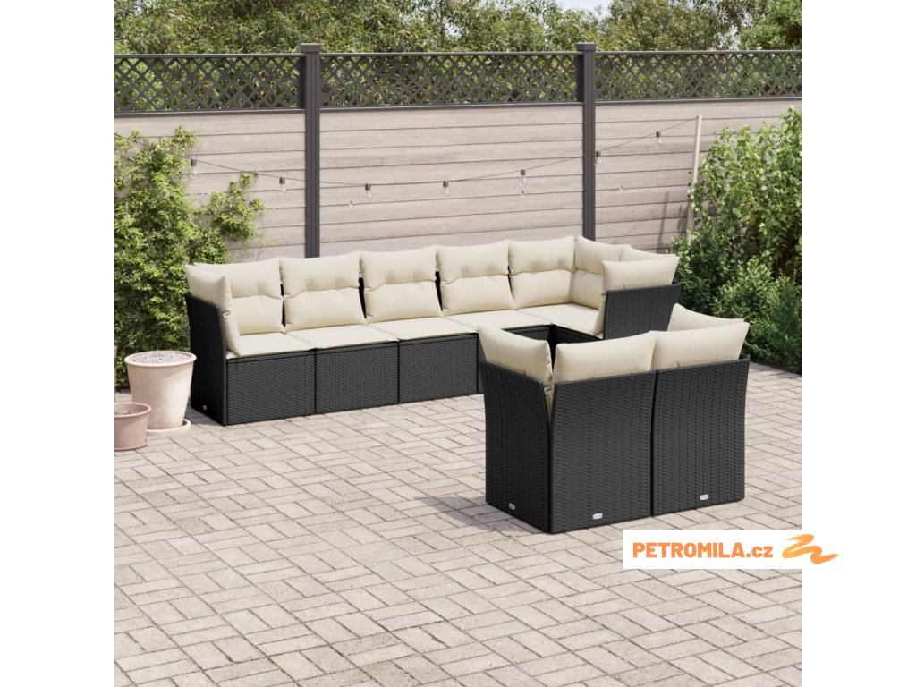 8dílná zahradní sedací souprava s poduškami černá polyratan