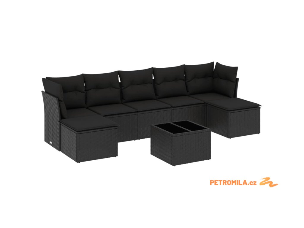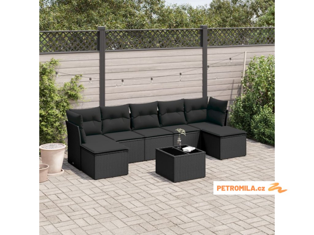 8dílná zahradní sedací souprava s poduškami černá polyratan