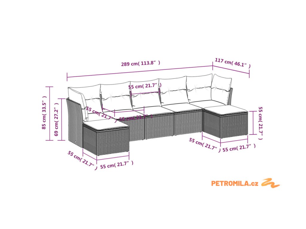 - Rozměry podušky za záda: 55 x 45 x 13 cm (D x Š x T)