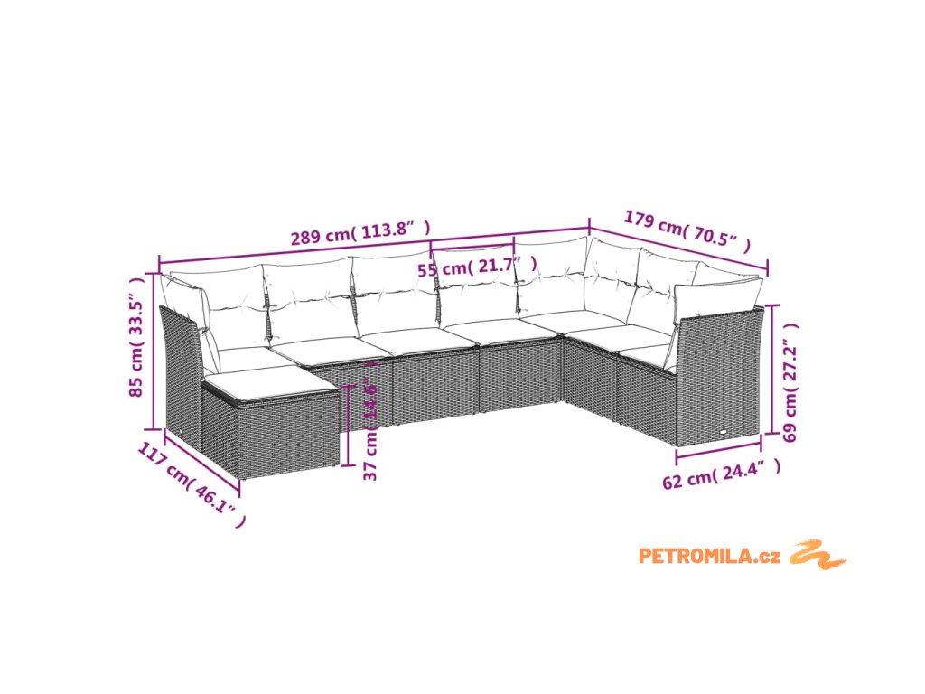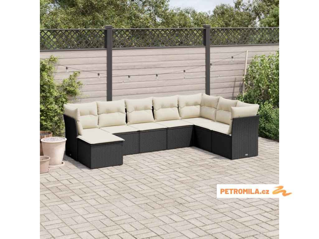 8dílná zahradní sedací souprava s poduškami černá polyratan