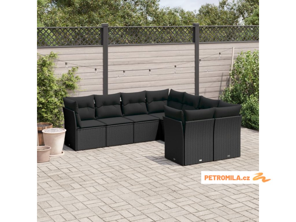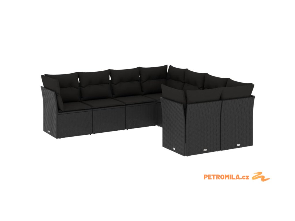 8dílná zahradní sedací souprava s poduškami černá polyratan