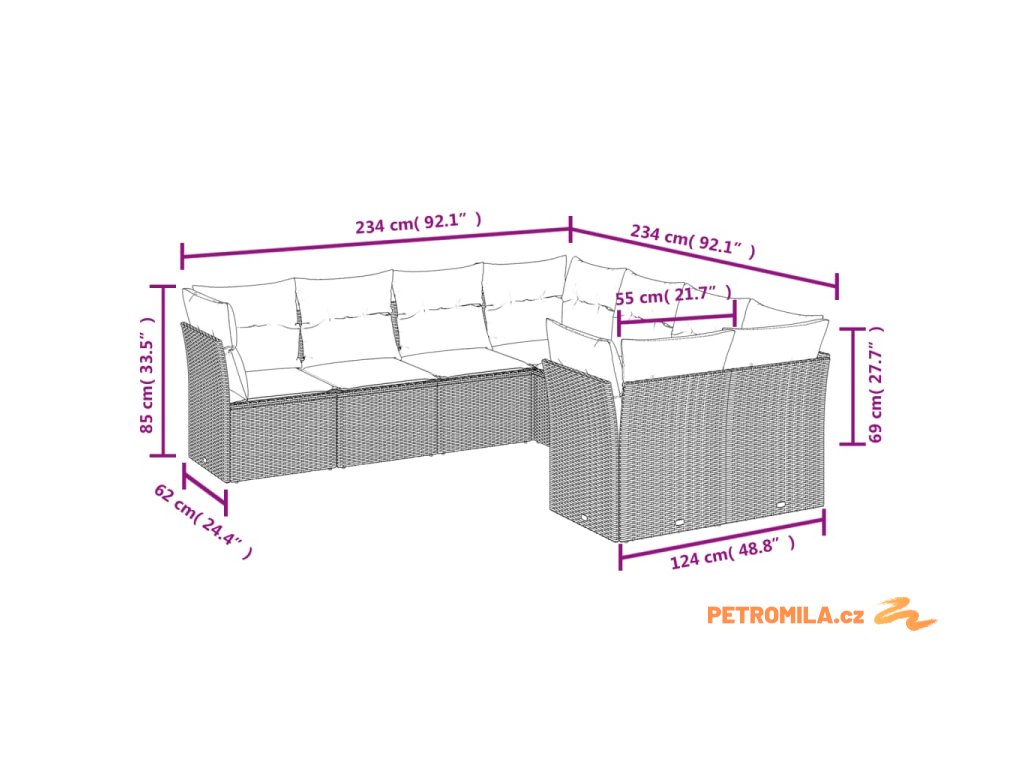 8dílná zahradní sedací souprava a podušky světle šedá polyratan