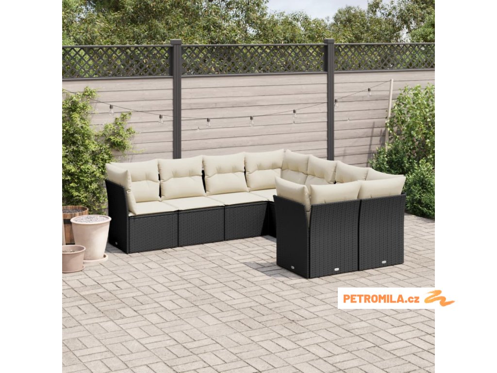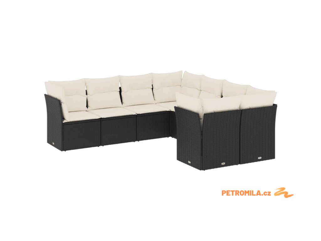 8dílná zahradní sedací souprava s poduškami černá polyratan