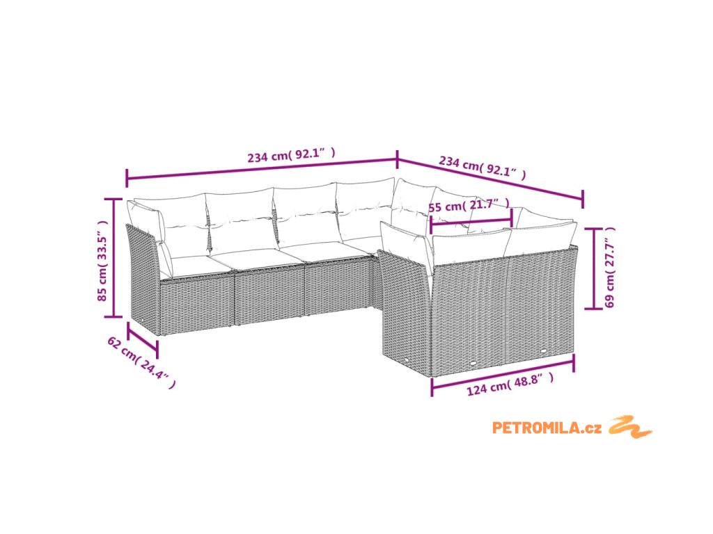 - Rozměry podušky na sedák: 55 x 55 x 3 cm (Š x H x T)