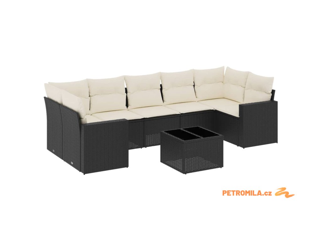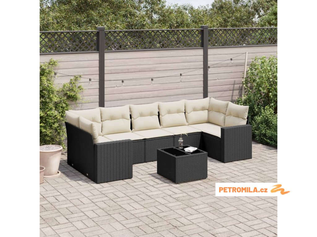 8dílná zahradní sedací souprava s poduškami černá polyratan
