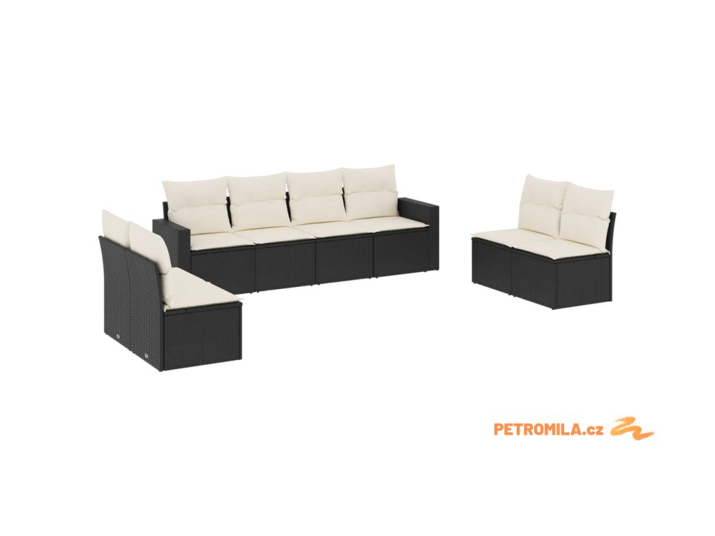 8dílná zahradní sedací souprava s poduškami černá polyratan