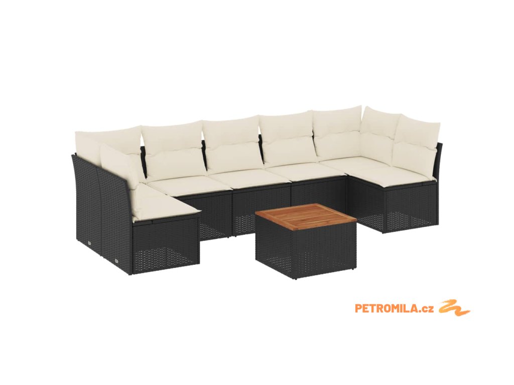 8dílná zahradní sedací souprava s poduškami černá polyratan