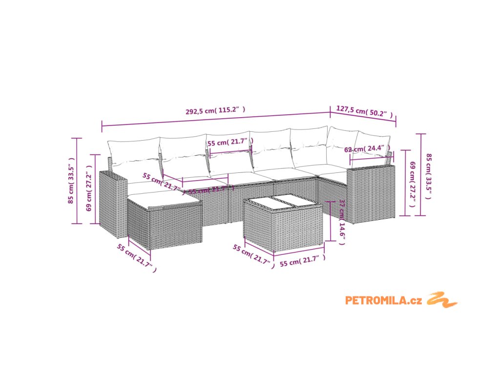 Tato zahradní sedací souprava je dokonalým doplňkem vaší zahrady, terasy nebo dvorku a poskytne vám pohodlné a příjemné místo, kde si můžete povídat s rodinou a přáteli nebo jen tak odpočívat a užívat si pobyt venku.