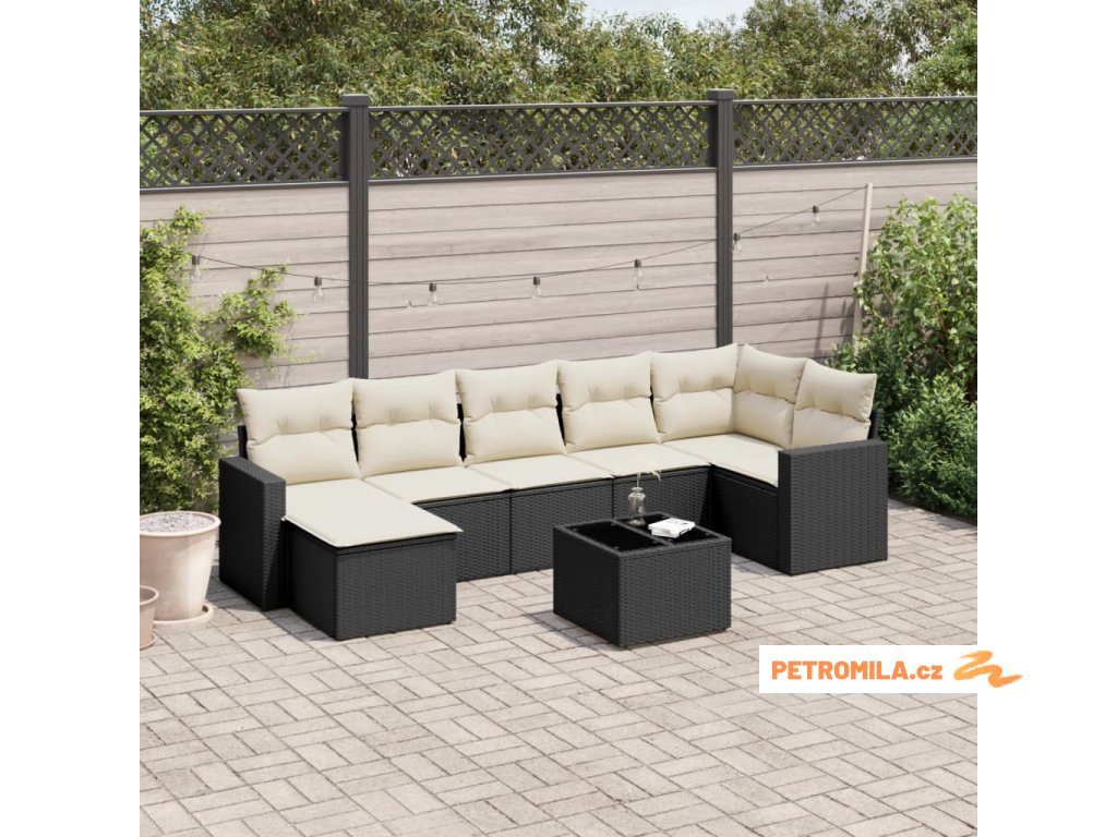 8dílná zahradní sedací souprava s poduškami černá polyratan