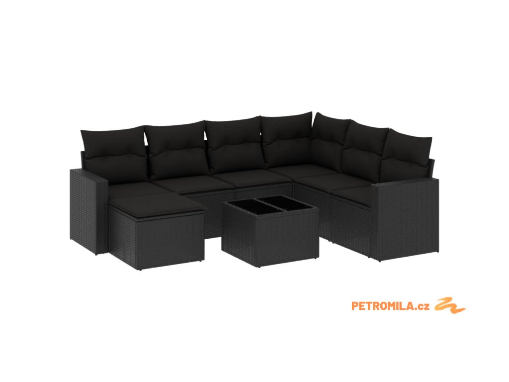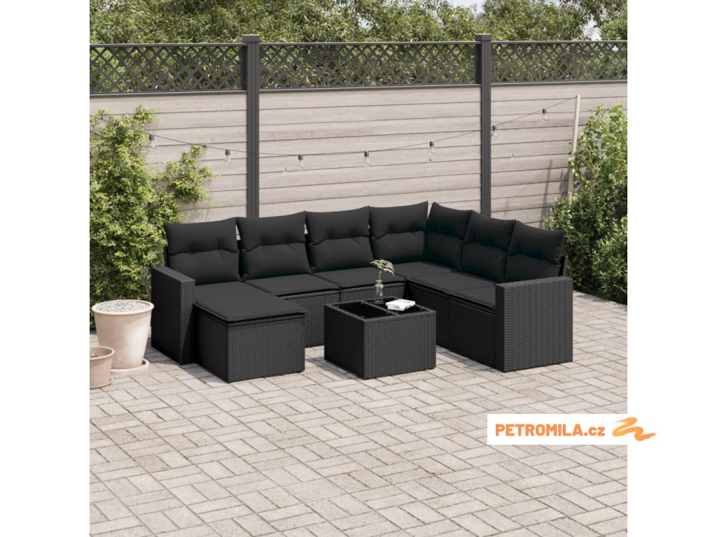 8dílná zahradní sedací souprava s poduškami černá polyratan