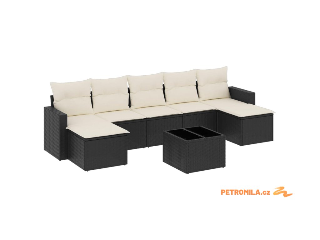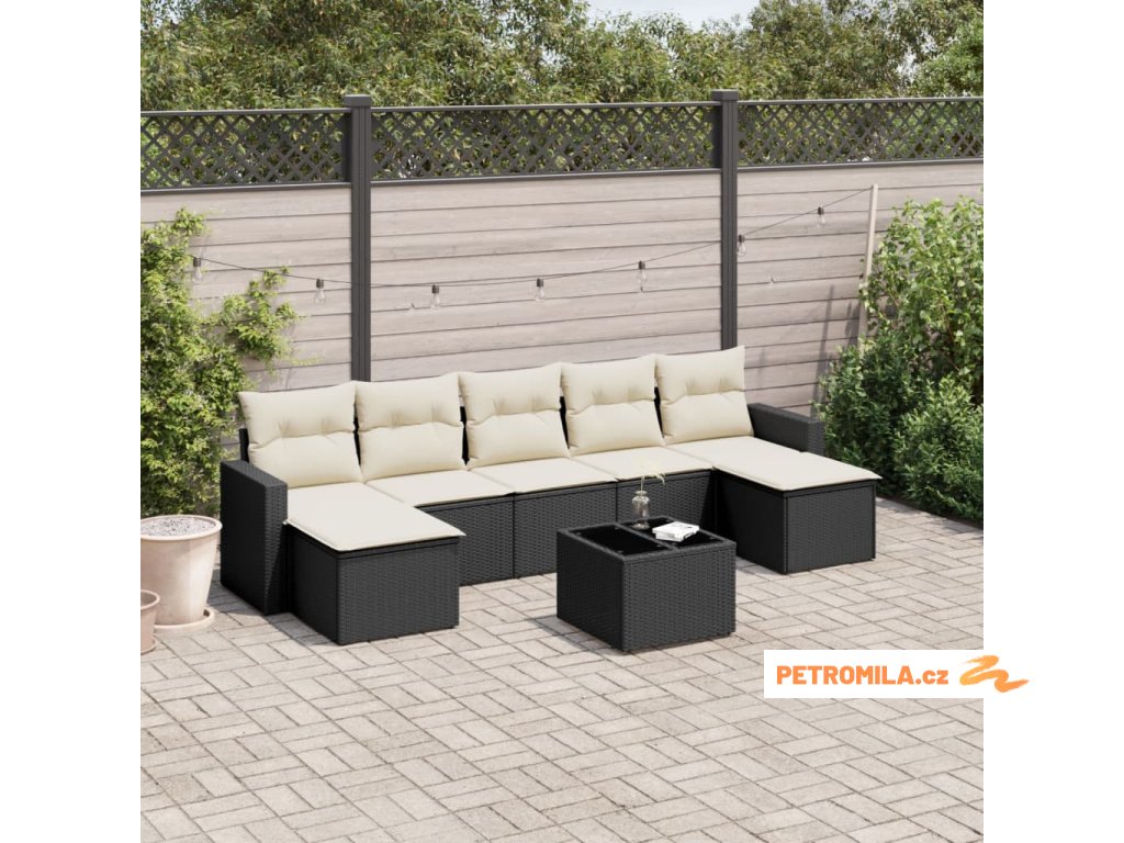 8dílná zahradní sedací souprava s poduškami černá polyratan