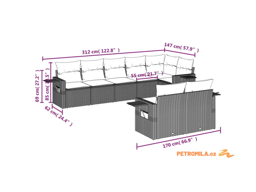 - Modulární design: Tato sada venkovního nábytku se vyznačuje modulární konstrukcí, je tedy zcela flexibilní a lze ji snadno přemisťovat, takže si můžete uspořádat venkovní nábytek dle vašich potřeb.