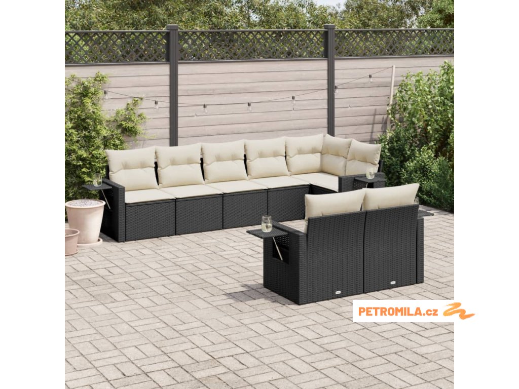 8dílná zahradní sedací souprava s poduškami černá polyratan