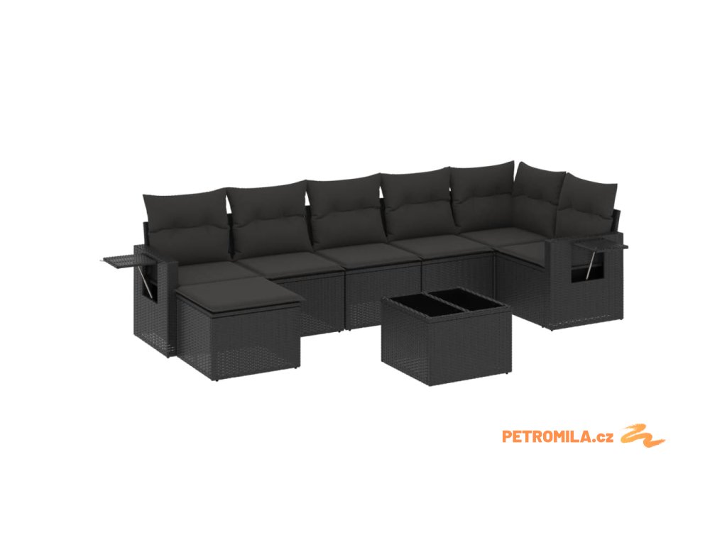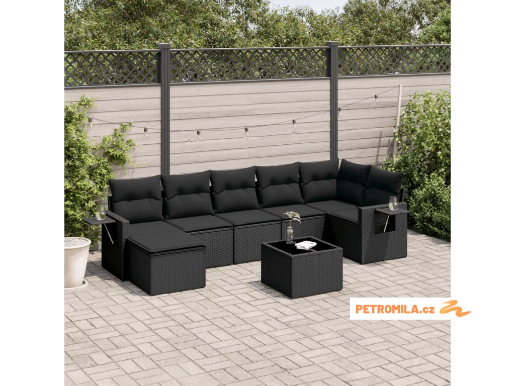 8dílná zahradní sedací souprava s poduškami černá polyratan