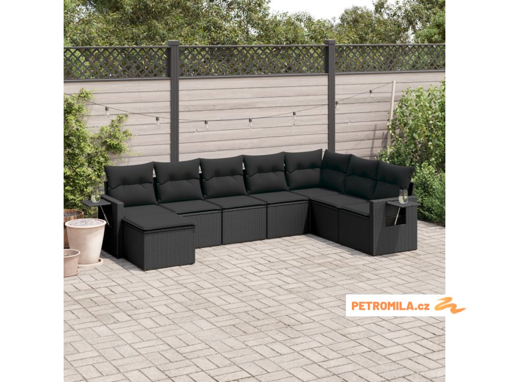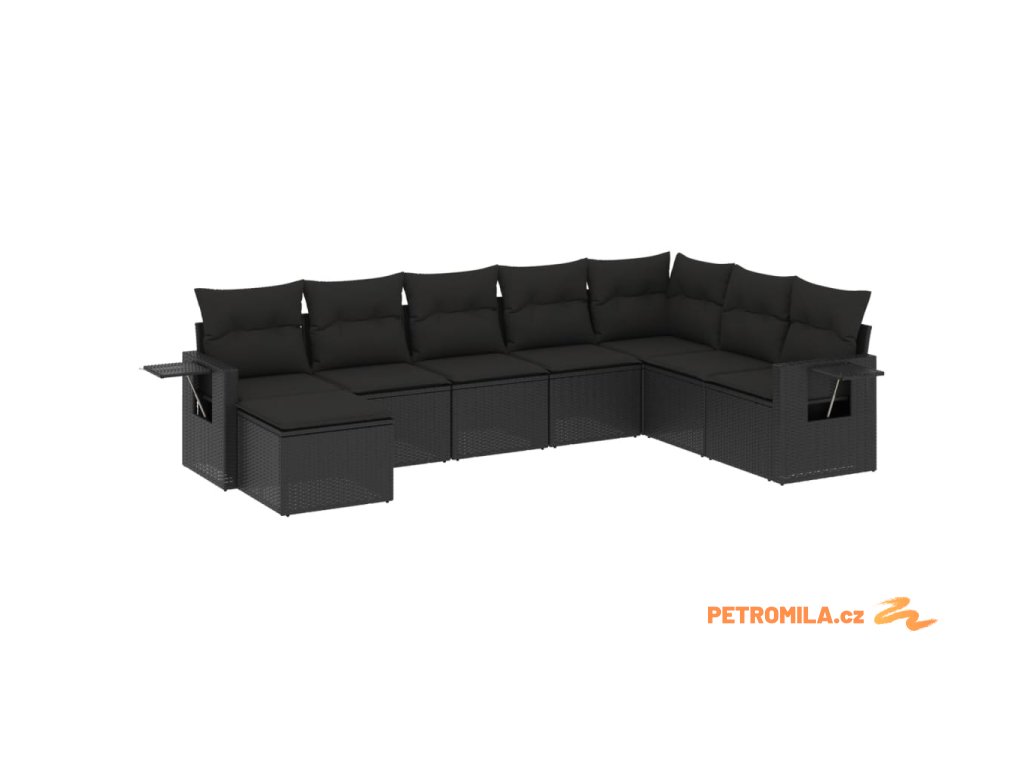 8dílná zahradní sedací souprava s poduškami černá polyratan