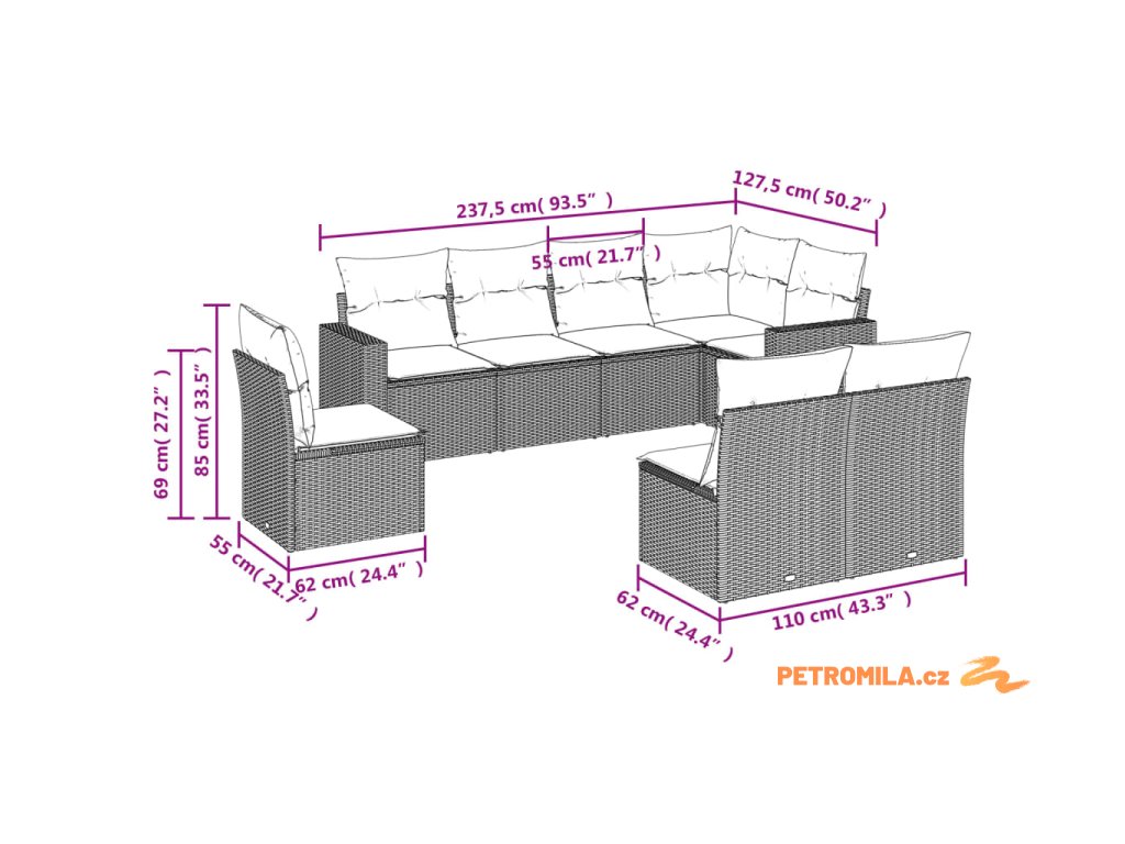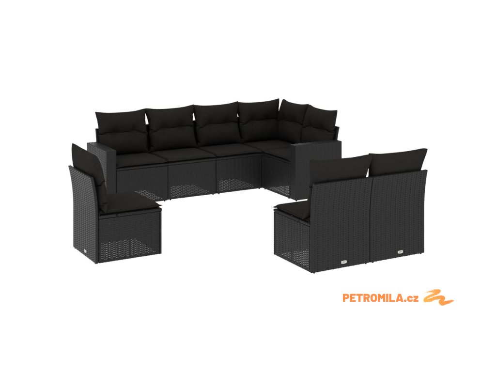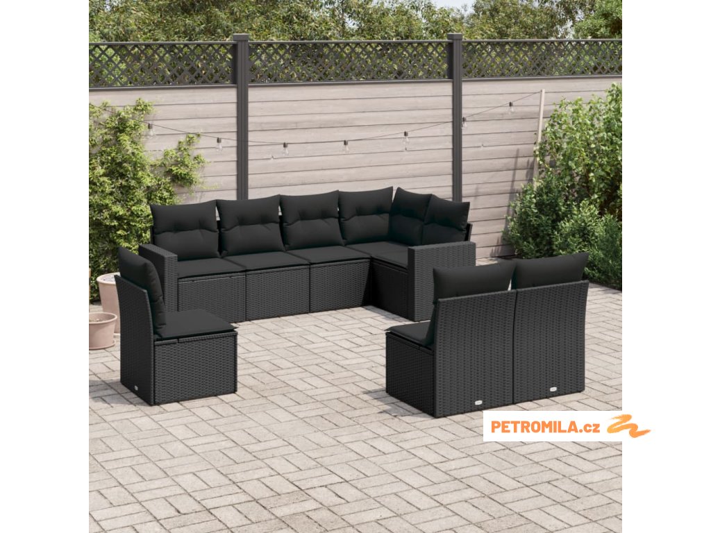 8dílná zahradní sedací souprava s poduškami černá polyratan