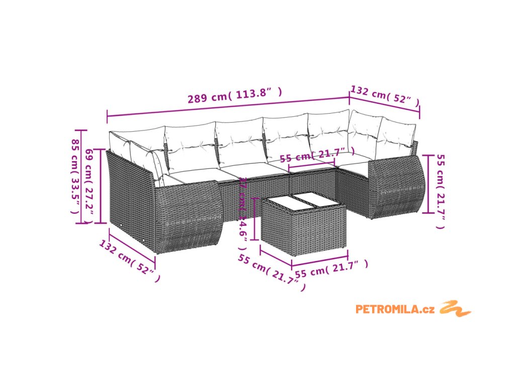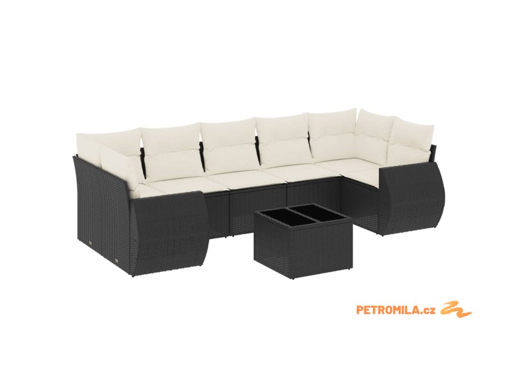 8dílná zahradní sedací souprava s poduškami černá polyratan