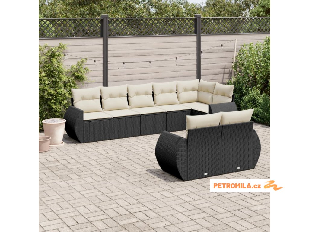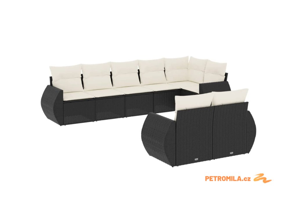 8dílná zahradní sedací souprava s poduškami černá polyratan